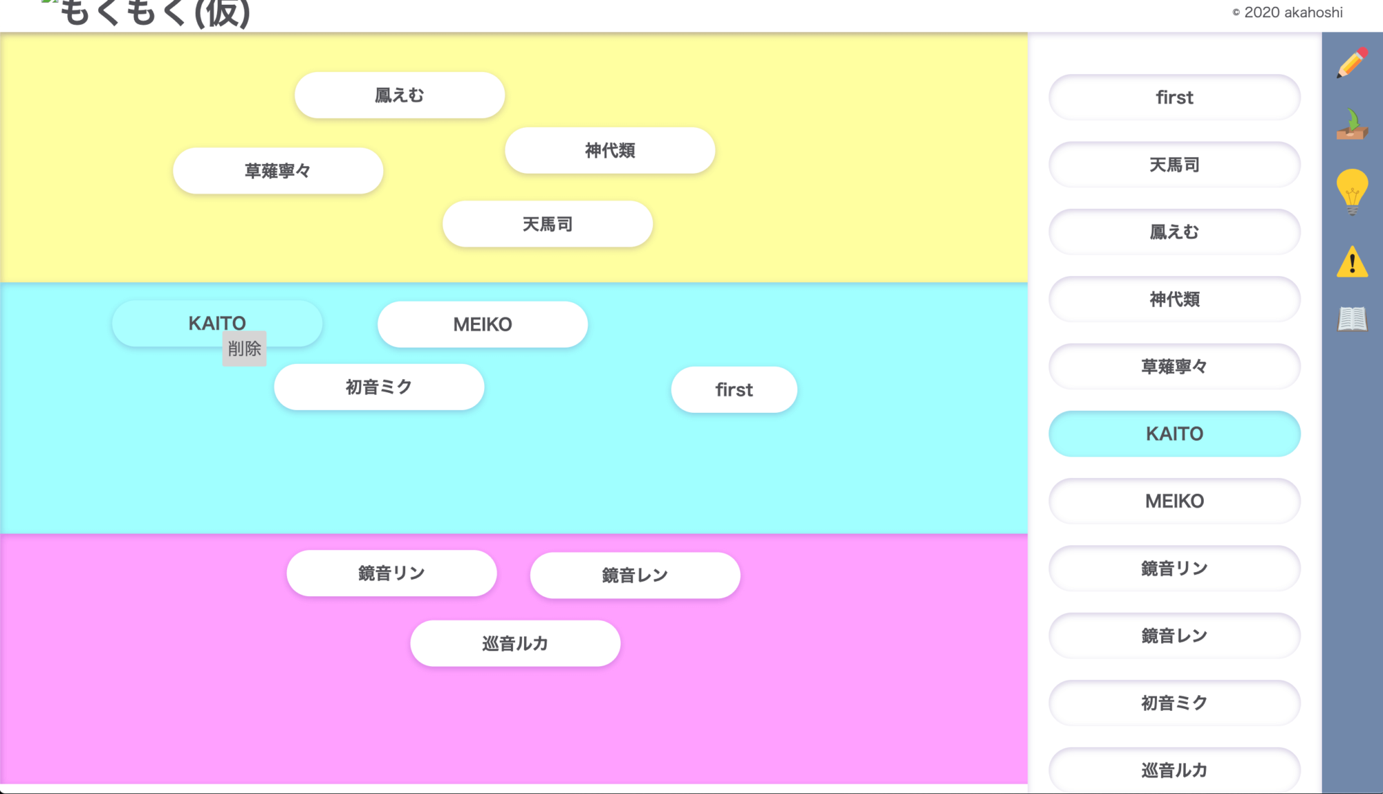 右クリックすると削除メニューが出ます。