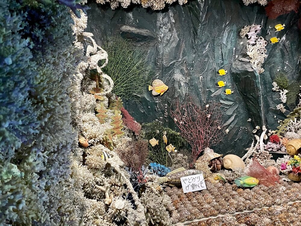 特に貝殻で作られた花はとても自然な感じで置いてあって驚く。