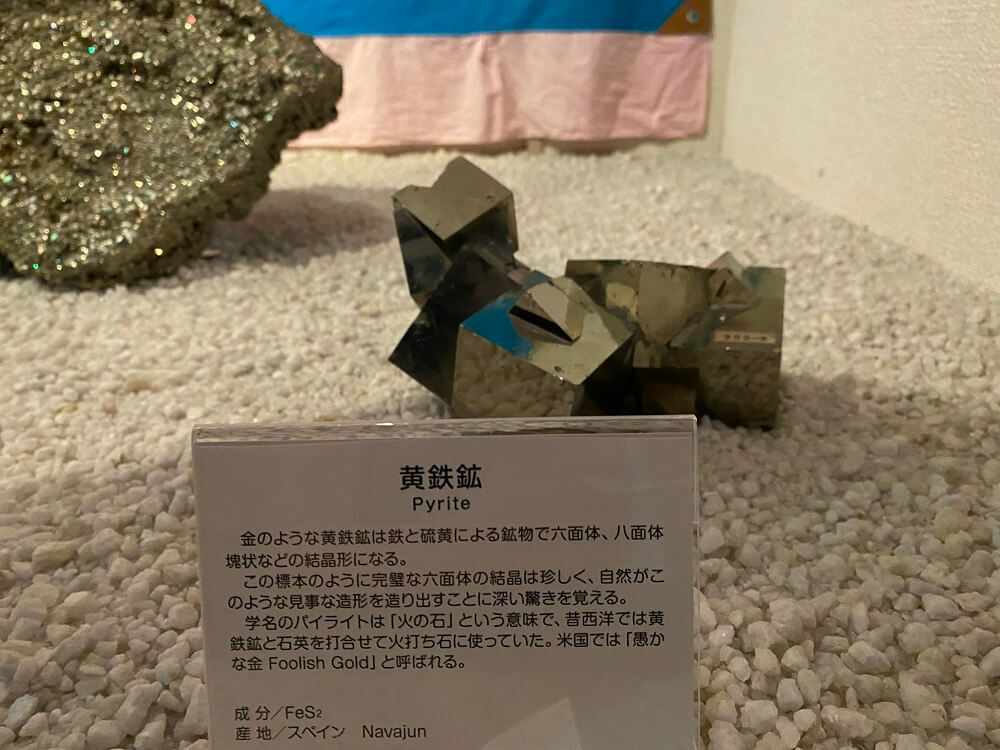 貝の展示スペースを抜けると、貝の標本と、なぜか石の標本が。