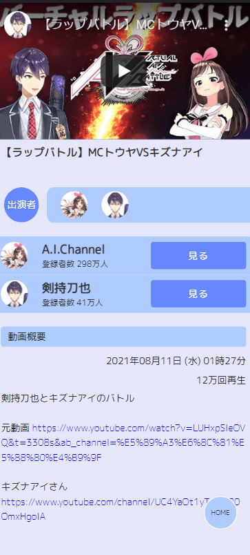 - 取得した動画の概要欄からコラボチャンネルの概要を取得し、表示する。