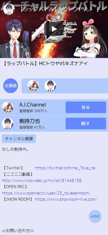 - コラボチャンネルのチャンネル概要と新着3件を表示