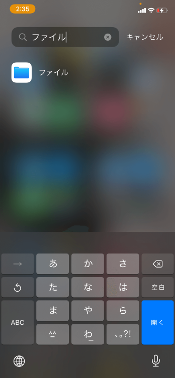 ホームを一番右にスライドして「ファイル」Appを検索します。