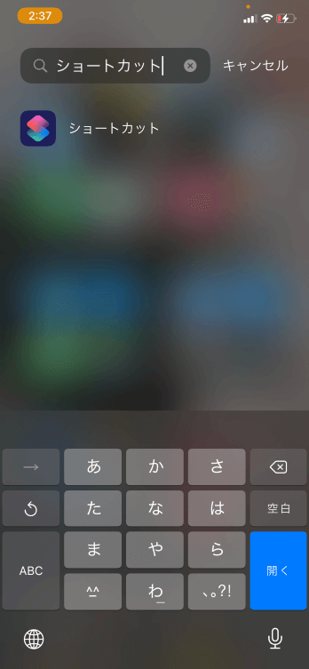 ホームを一番右にスライドして「ショートカット」Appを検索します。