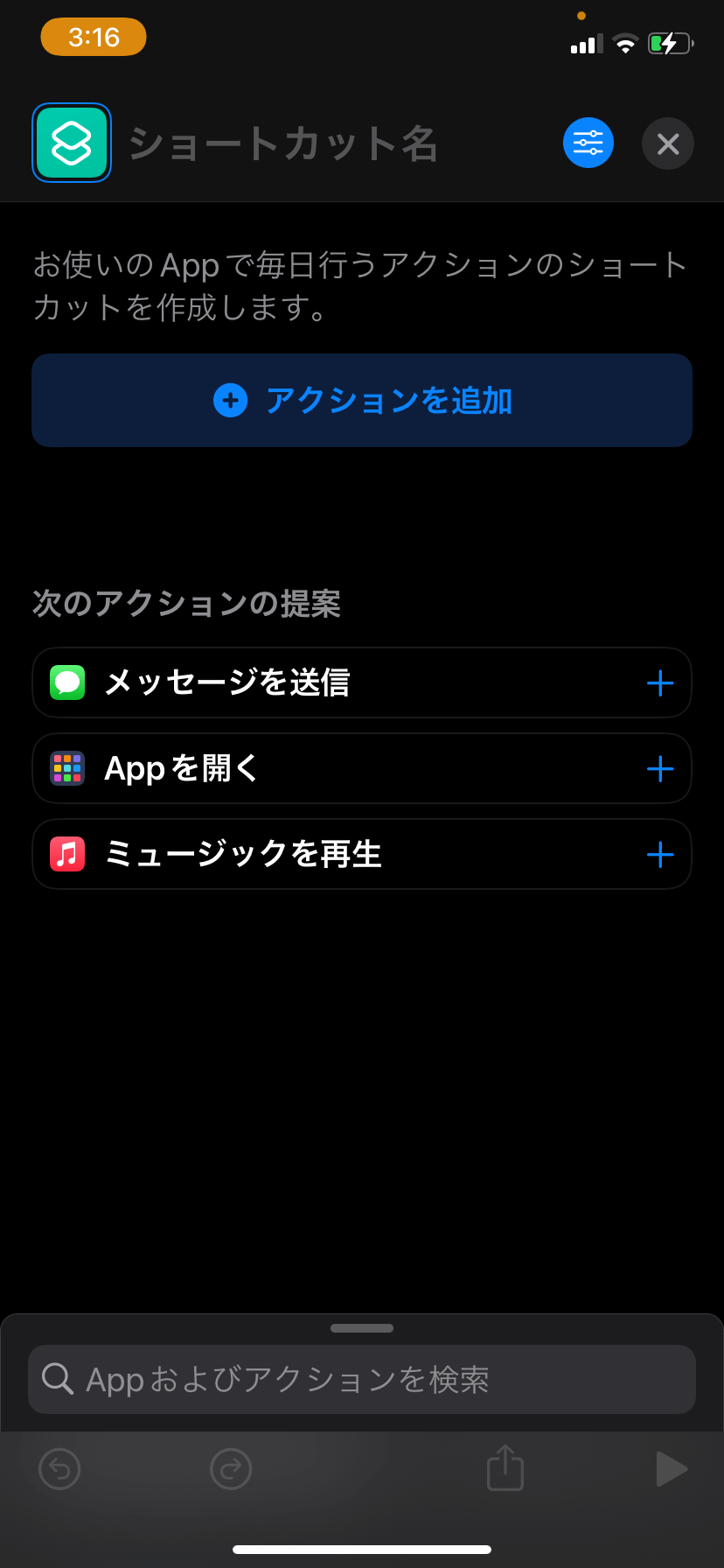 右上の「+」から新しいショートカットを作成します。