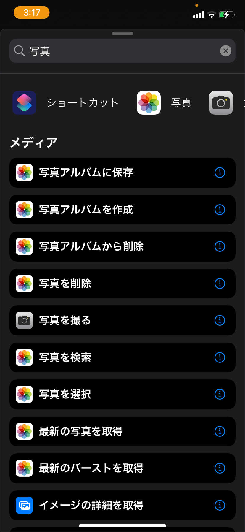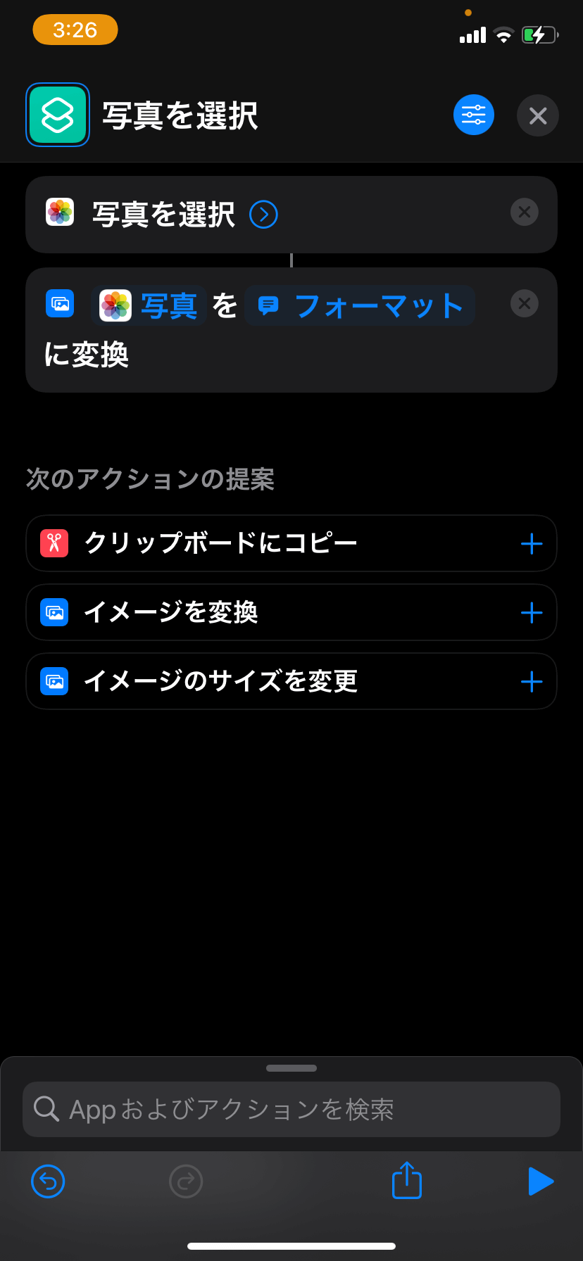 「写真」と入力すると、一覧の中に「写真を選択」があるのでタップして追加します。
