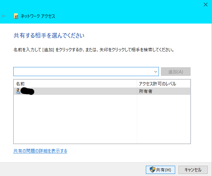 「共有(S)…」を開いて、共有したいユーザーを追加します。